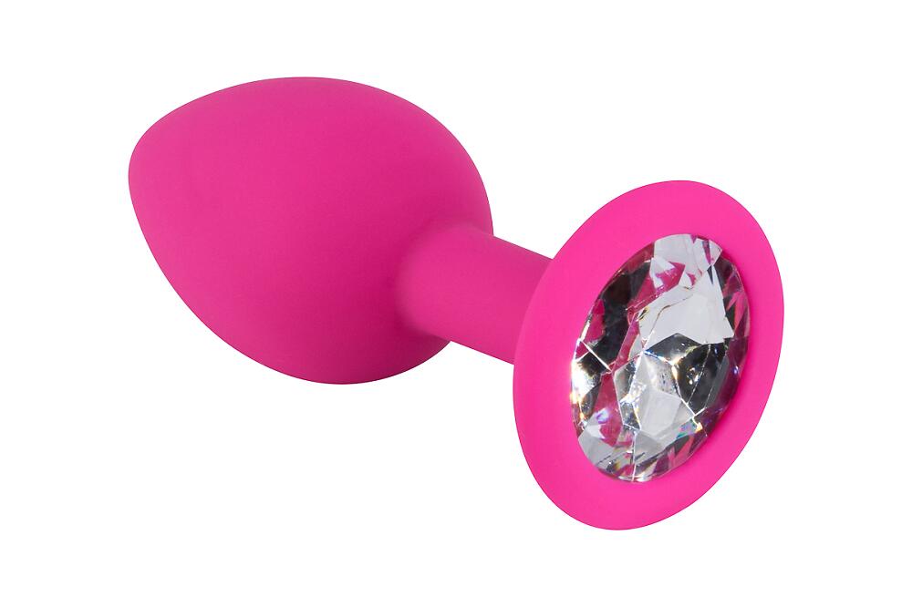 Розовая силиконовая пробка с прозрачным кристаллом
