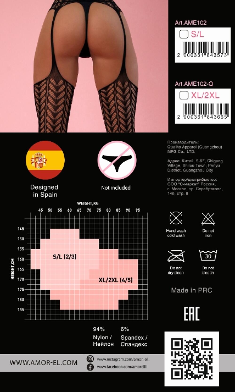 Чулки с поясом из мягкой эластичной сетчатой ткани. Благодаря использованию большего количества нейлона, белье сохраняет очертания, не деформируется, растягивается и выгодно облегает фигуру. А за счет эластана, даже после сильного растяжения, оно не деформируются, и всегда принимает исходную форму. Изделие не вызывает аллергию, не окрашивает. Уход и стирку следует производить в соответствии с инструкцией завода-изготовителя на этикетке. Коллекция Amor El Цвет черный Размер S L (42-48)