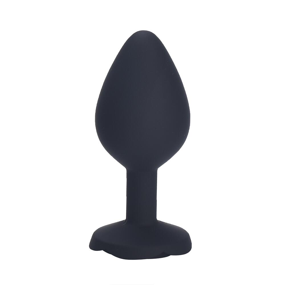 Фото 1: Чёрная силиконовая анальная пробка с ограничителем в форме розочки (Размер M)Фото 2: Чёрная силиконовая анальная пробка с ограничителем в форме розочки (Размер M)