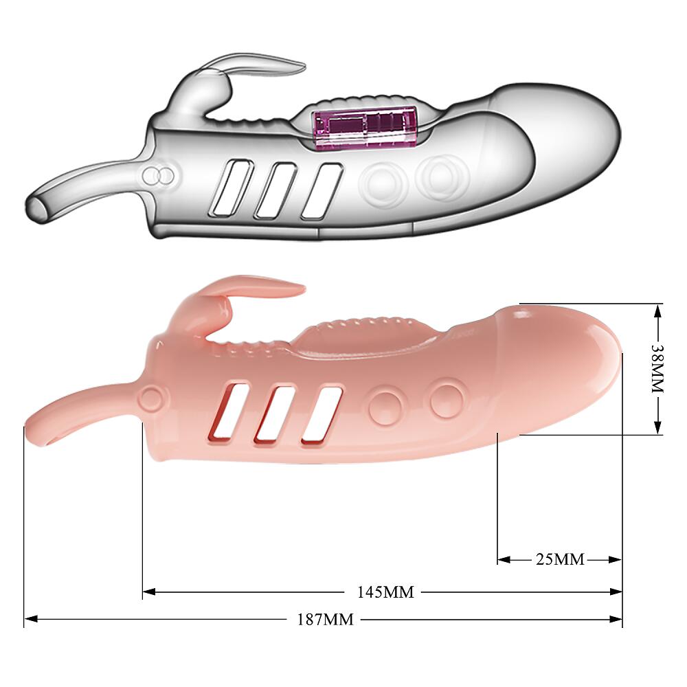 Аккуратная насадка на член, изготовленная из ТПЕ. В комплект входит вибропуля и батарейки. Длина изделия - 14,5 см, из них удлинитель 2,5 см. диаметр отверстия в нерастянутом состоянии - 2,5 см, внешний диаметр 3,8 см.