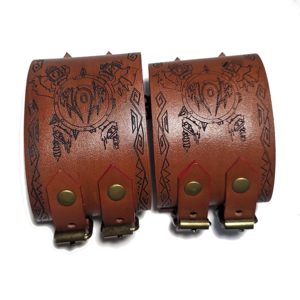 Наручники сделаны из натуральной кожи коричневого цвтеа с гравировкой Орда (World of Warcraft)