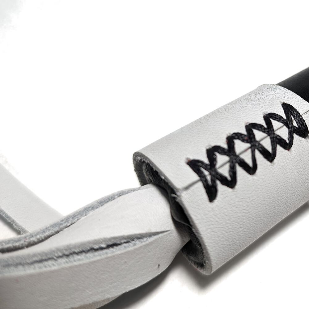 Плеть изготовлена из натуральной кожи чёрного и красного цвета. 10 хвостов. Общая длина 57 см. Длина хвостов 39 см.