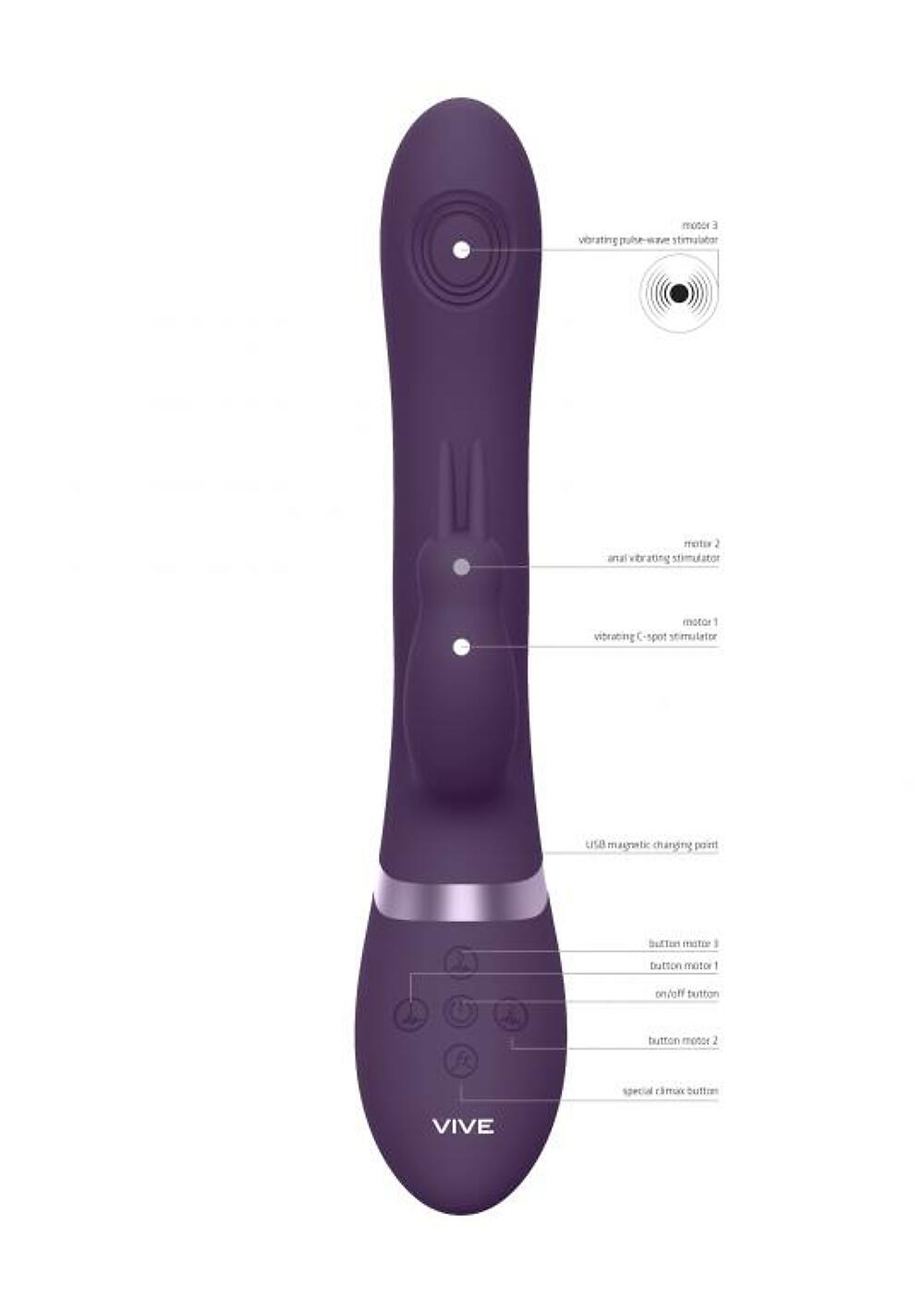 Изготовлено изделие из шелковистого медицинского (гипоаллергенного) силикона и как большинство моделей линейки VIVE имеет кнопку мгновенного оргазма, запуская все моторы на максимум одним касанием.